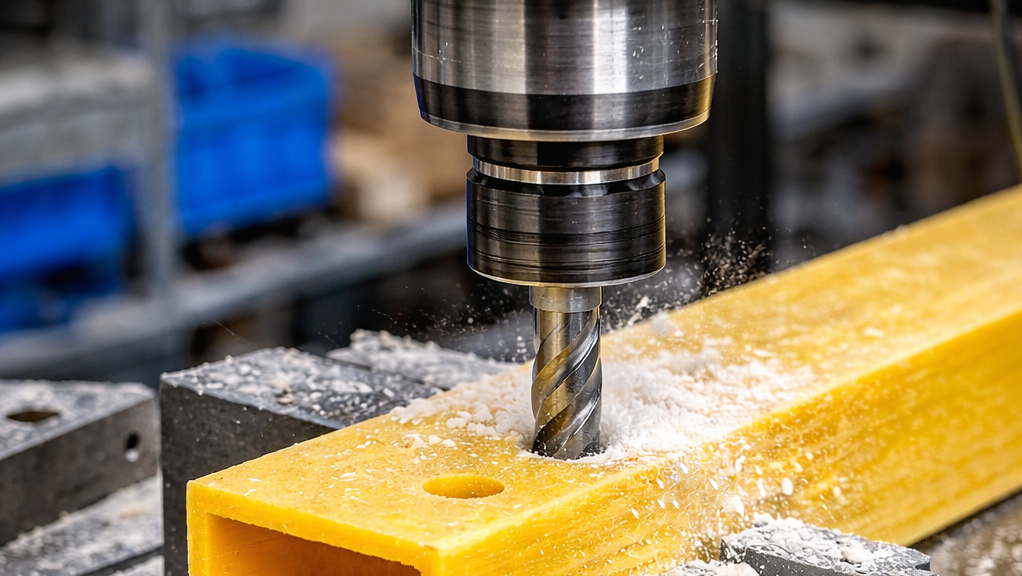 We provide custom mechanical processing of GRP profiles according to your individual specifications. Using CNC-controlled machines, we carry out precise operations such as cutting, drilling, milling and other machining steps.